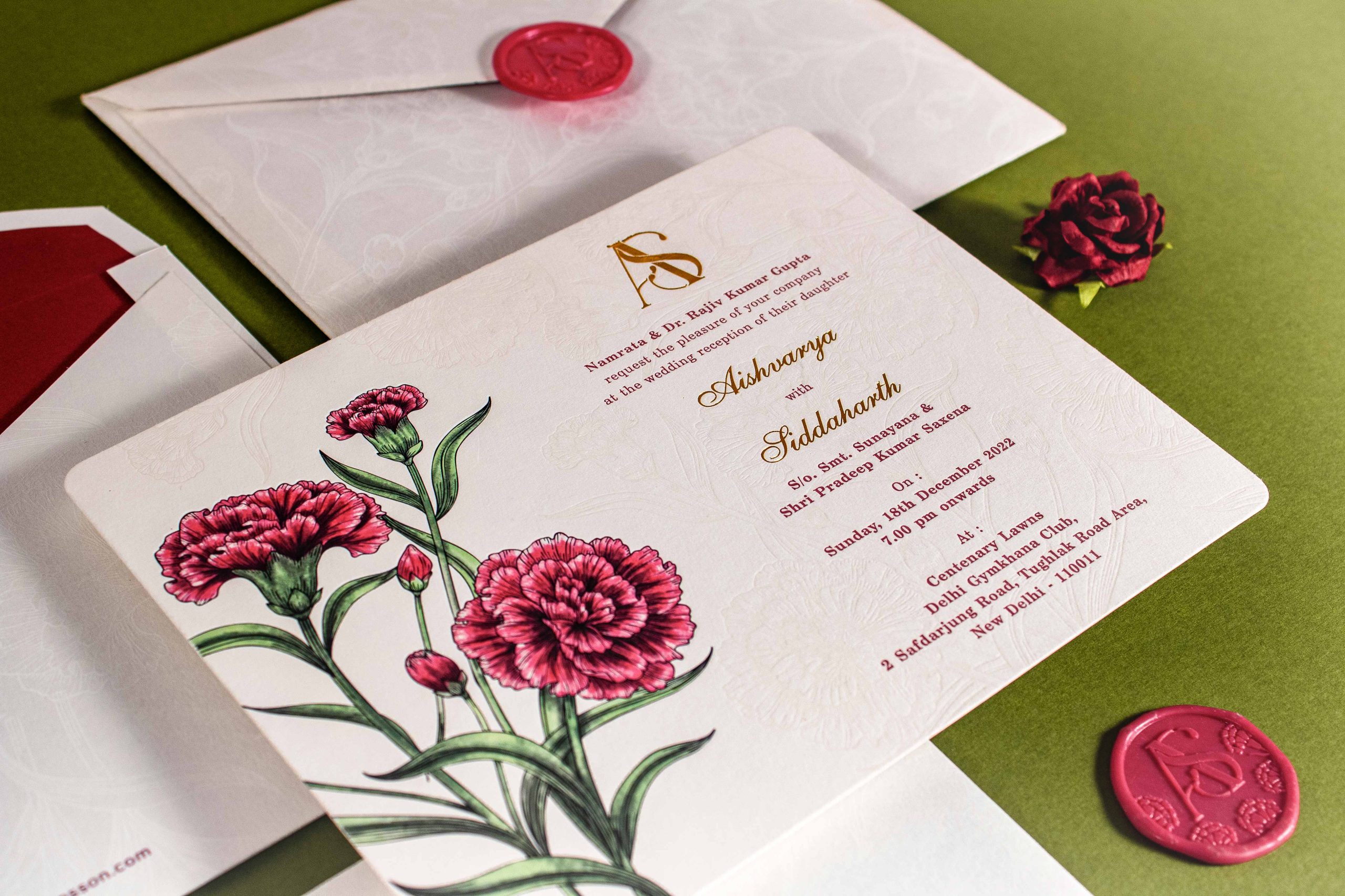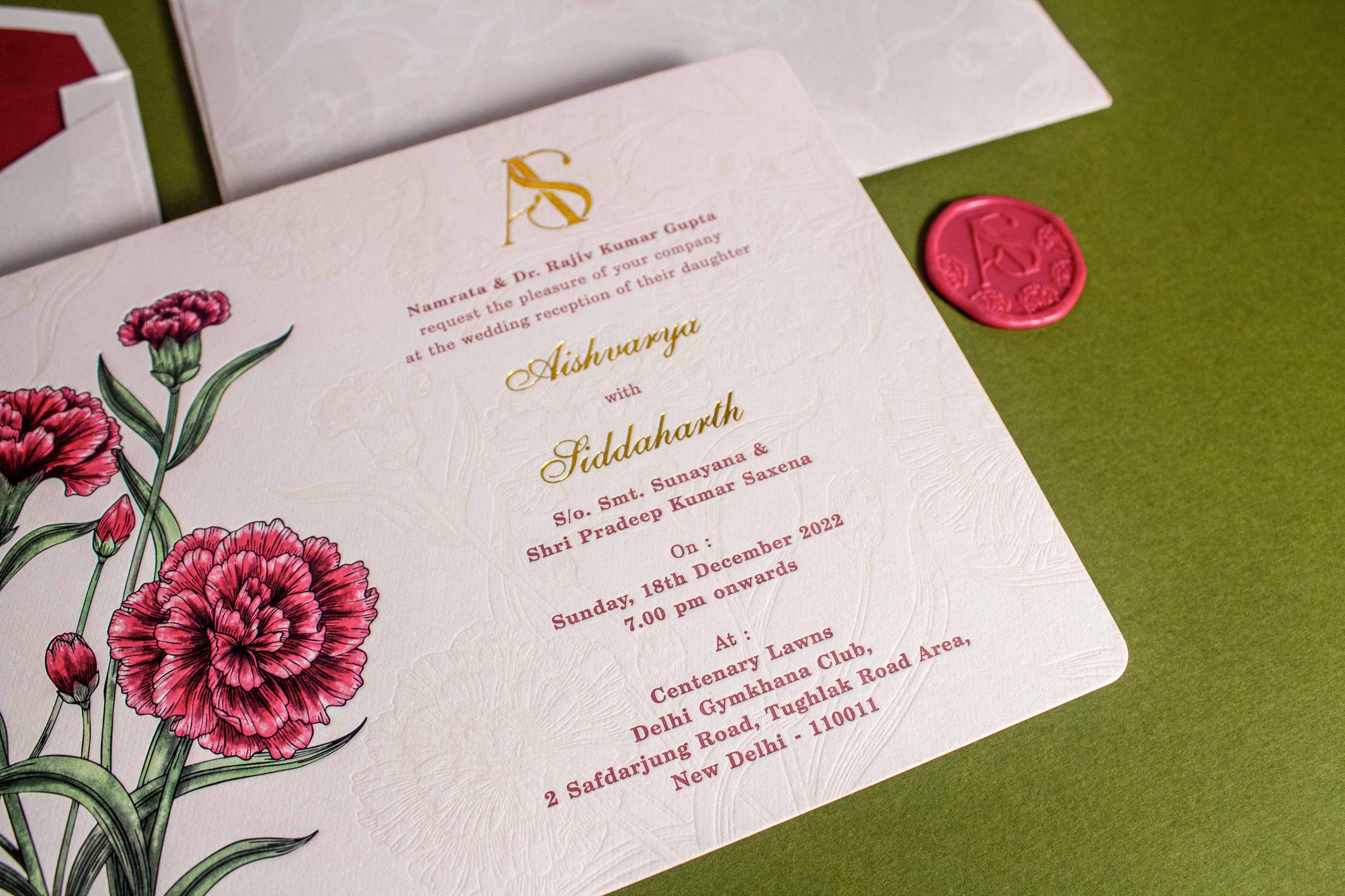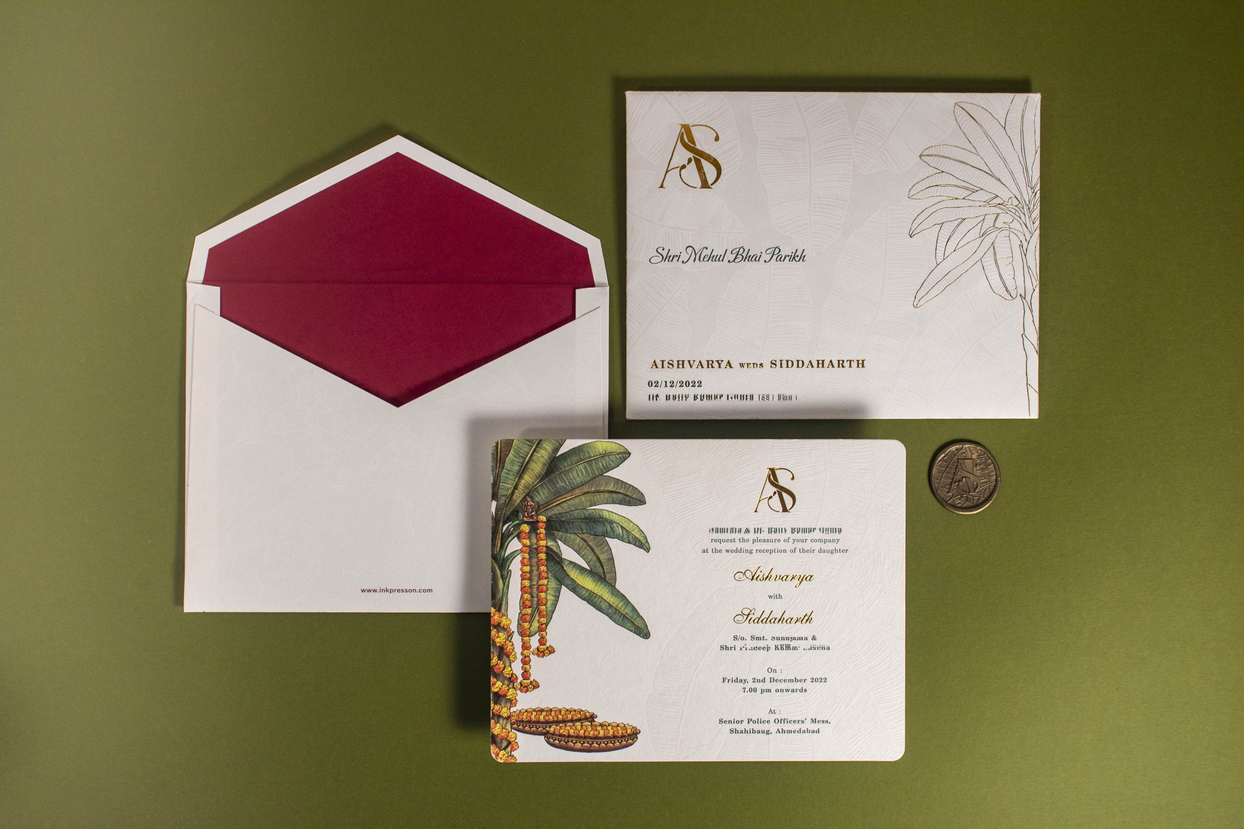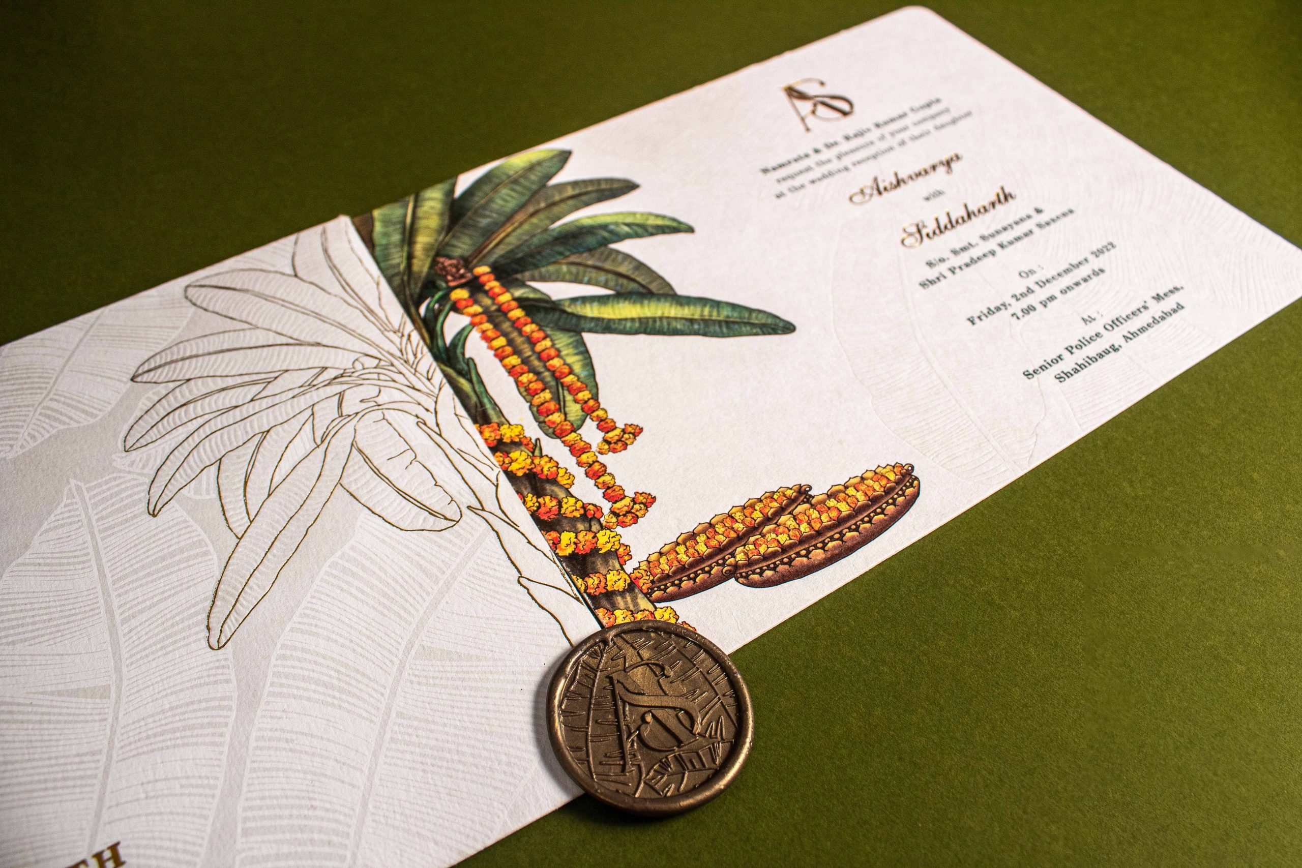 Aishwarya & Siddharth Carnation & Banana Leaf Letterpress wedding Invitation