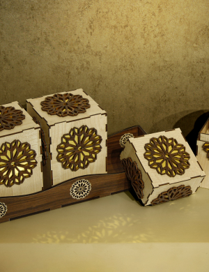 Customised Lasercut And Layered Gifting Box With 4 Bottles