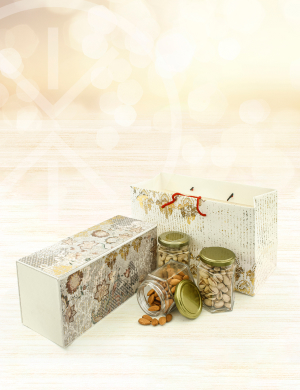 Horizontal Hardbound Box With Four Jar For Gifting With Bag