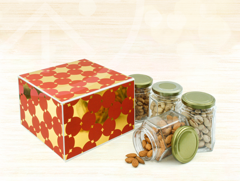 Horizontal Hardbound Box With Four Jar For Gifting With Bag