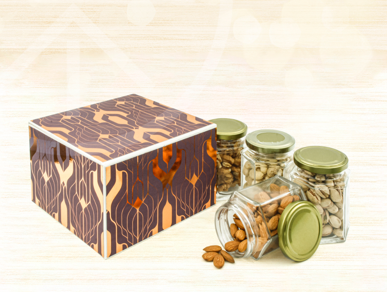 Square Hardbound Box With Four Jar For Gifting