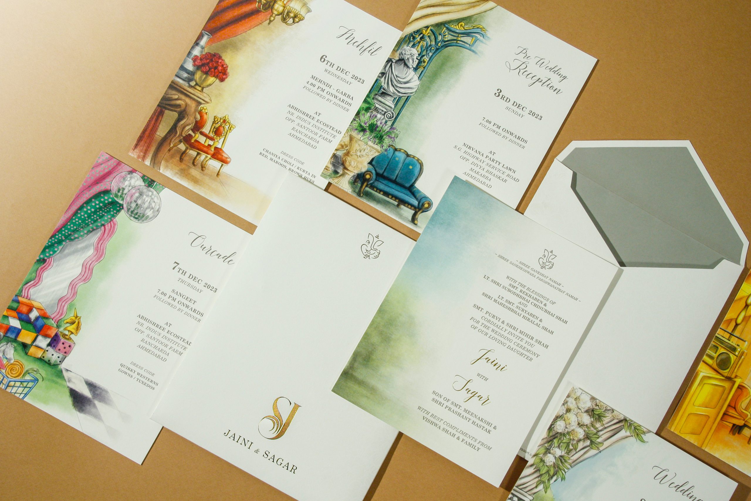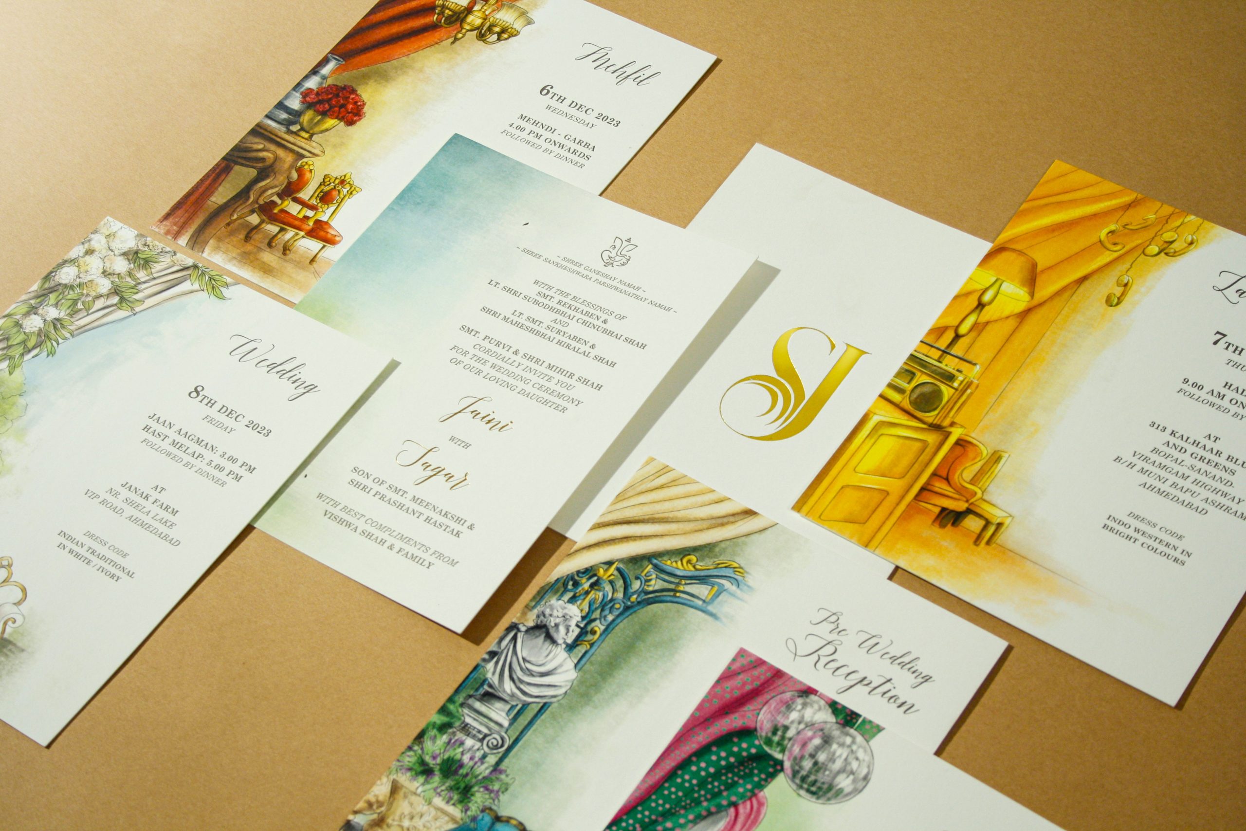 Jaini & Sagar Illustrative Letterpress Wedding Card
